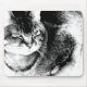 Ein Mousepad mit schwarz-weißem Foto einer halb-burmesischen Katze im nahen-up.