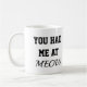 Cat mug with the image from the oil painting by YaneyaArt with the statement: you had me at meow.