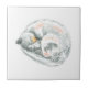 Diese dekorative Kachel zeichnet sich durch eine handgezeichnete Lebenszeichnung einer sehr gemütlichen Schlafkatze aus. Kunstwerk: Farbstift auf Papier. Copyright: Dominic A. White. Alle Rechte vorbehalten.