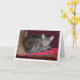 Katze auf Red Cushions Grußkarte. Sie können dieses Produkt ganz einfach kostenlos anpassen, wenn Sie Text hinzufügen oder die Farbe des Hintergrunds ändern möchten.
