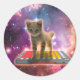 Cat on synthesizers in space runder aufkleber