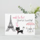 Personalisierte Niedliche Katze Paris Geburtstagsparty Einladung. Dieses einladende Hotel bietet eine hübsche Katze in Paris mit dem Eiffelturm und einem Café-Tisch.