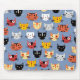 Viele niedliche Katzen auf einem mittelblauen Hintergrund. Katzen Liebe eine Maus. Originelle Kunst von Nic Squirrell.