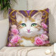 Niedlich rosa, lila und goldfarbenes Katzenkissen.