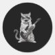 Cat Playing Guitar Rock Star Rock And Roll Men Wom Runder Aufkleber