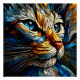 Das Portrait eines wunderschönen Katzenkopfes wird in einem abstrakten Buntglasstil präsentiert. Die Farbtöne Blau, Gelb und Türkis verbinden sich in dieser künstlerischen Komposition, die den felinen Charme in einer faszinierenden und eleganten Darstellung einfangen lässt.