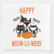 Adorable Katze konfrontiert Jack-o-lantern Kürbis glücklich Meow-lo-ween Halloween Papier Napkins! Ein Katzenfutter mit einem niedlichen Katzengesichtswerk, das auch Happy Meowloween ausliest. Niedliche Napkins für Ihren Saisontisch oder Ihr Halloween-Party!