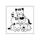 Funny illustration of five cartoon cats in a pyramid formation with two cats at the bottom, two in the middle, and one on top. The cats have different markings and various expressions. One appears to be facing away.
