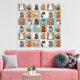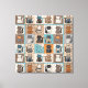 Farbenfrohe Quadrate verfügen über verschiedene Katzen mit unterschiedlichen Mustern und Farben, die jeweils auf einem einzigartigen Hintergrund sitzen