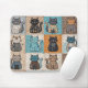 Farbenfrohe Quadrate verfügen über verschiedene Katzen mit unterschiedlichen Mustern und Farben, die jeweils auf einem einzigartigen Hintergrund sitzen