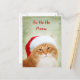 Lange haarige orangefarbene Katzenkatze spielt seine Weihnachtsmannmütze und Bartkatze liebt die Weihnachtspostkarte. Text kann leicht geändert oder entfernt werden.