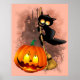 Cat Scared by Pumpkin Fun Halloween Charakter Poster