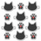 Silhouette eines Kätzchens und Whiskers. Schwarze Pfoten drucken mit roten Herzen in der Mitte.