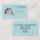 Auf diesen türkisfarbenen Visitenkarten finden Sie niedliche schwarz-weiße Mosaikkatzen. Um das Bild und den Text zu ändern, klicken Sie auf die Schaltfläche Personalisieren.