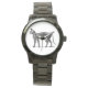 Cat Skeleton Illustration Vintag Art ~ Ladys Black Stainless Steel Bracelet Watch