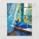 Eine blau-schwarze Katze schläft auf einem Fensterrücken in einem friedlichen, sonnenbeleuchteten Rahmen. Malerei