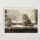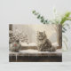 Weihnachts-Feiertagskarte mit einem Gemälde einer schönen grauen Katze, die an einem schneebedeckten Wintertag in einem Fensterbrett sitzt. Personalisiert auf der Rückseite mit Ihrer Nachricht und Ihrem Namen. Kontaktieren Sie mich für Hilfe bei Ihrer Anpassung oder um zusätzliche Matching oder Koordination von Zazzle Produkten anzufordern.