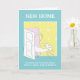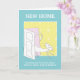 Niedliche Katze, die durch eine Tür läuft - auf einem gelben Hintergrund - fügt ihren eigenen Text zu den neuen Zuhause-Grüße-Karten von Ricaso hinzu