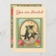 Cat themed wedding invitation with a vintage reproduction image of cat bride and groom.