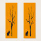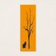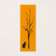 Dieses Lesezeichen zeigt eine schwarze Katze unter einem schwarzen Baum, die vor einem leuchtenden, goldfarbenen Hintergrund direkt auf Sie schaut. Das Bild wird auf der Rückseite wiederholt.