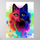 Psychedelischer Trippy Pop Art Cat Portrait auf farbenfrohen Paint Spritzern. Original Vector IllustrationCopyright BluedarkArt The ChameleonArt.