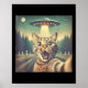 Cat Ufo Selfie Art Funny Cat Alien Poster