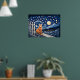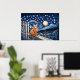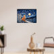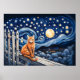 Cat Under Starry Night Wasserfarbe Poster