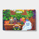 Abzeichen mit Louis Wains Tiermalerei Master of Cat Uni (1860-1939). Eine wohlüberlegte, weiße Katze mit auffallend blauen Augen liegt wunderbar neben einer lebhaften Auswahl an wunderschönen Blume. Die majestätische Uni der Katze liegt im Hintergrund unter einem rosa und blauen Himmel. Ein wunderbares Geschenk für Katzenliebhaber und englische Kunst.