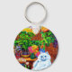 Schlüsselanhänger mit Louis Wains Tiermalerei Master of Cat Uni (1860-1939). Eine wohlüberlegte, weiße Katze mit auffallend blauen Augen liegt wunderbar neben einer lebhaften Auswahl an wunderschönen Blume. Die majestätische Uni der Katze liegt im Hintergrund unter einem rosa und blauen Himmel. Ein wunderbares Geschenk für Katzenliebhaber und englische Kunst.