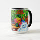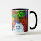 Kaffeemaschine mit Louis-Wains Tiermalerei Master of Cat Uni (1860-1939). Eine wohlüberlegte, weiße Katze mit auffallend blauen Augen liegt wunderbar neben einer lebhaften Auswahl an wunderschönen Blume. Die majestätische Uni der Katze liegt im Hintergrund unter einem rosa und blauen Himmel. Ein wunderbares Geschenk für Katzenliebhaber und englische Kunst.