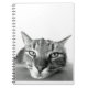 Foto einer Katze mit einem Tabby-Kopf, der auf einem Kissen ruht und in die Kamera schaut.
