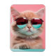 Individueller Magnet mit orangefarbener Katze, die eine Aviator-Sonnenbrille mit rosa Hintergrund trägt.