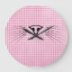 Cat Whiskers on Pink and White Gingham Große Wanduhr