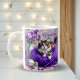 Cat with Purple Eyes in Purple Yarn and Flowers Kaffeetasse
