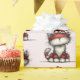Wrapping paper with a whimsical drawing featuring a big orange red kitty cat.