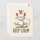 Diese Postkarte zeigt stolz das Wort "Behalt Calm" mit einer niedlichen Katze in einer Yoga-Pose und ist somit eine ideale Wahl für Katz- und Yogafreunde.