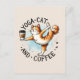 Diese Postkarte zeigt stolz die Phrase "Yoga Cat and Coffee" mit einer niedlichen Katze in einer Yoga-Pose und ist somit eine ideale Wahl für Katzenliebhaber und Yogafreunde.