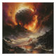 Este impresionante diseño muestra una escena cósmica surrealista donde un planeta colisiona con el océano, creando un cataclismo visual. Ideal para los amantes del arte cósmico y surrealista, esta ilustración fusiona impresionismo y surrealismo para evocar una sensación de cataclismo y destrucción.