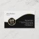 Die Visitenkarte des Caterers besteht aus schwarz-weißen Segmenten, die durch einen schweren Goldstreifen getrennt sind. Eine goldene Ikone eines Bestecks liegt auf der unteren links Seite des Designs, die sich in der Regel für Catering, Essen, Restaurant, Café, Deli, Speisen, Mahlzeiten, Kochen, Catering Themen eignet.