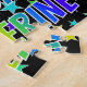 This vibrant, exciting, birthday-themed jigsaw puzzle design features the message "HAPPY BIRTHDAY, CATHERINE" with the characters having a colorful rainbow spectrum inspired gradient pattern, along with a fun star field background pattern. A vibrant puzzle like this might be a fun way to send birthday wishes to somebody named Catherine. [~Z0000468]