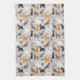 White cat, black cat, tabby cat, Persian cat, Siamese cat, tuxedo cat with paw prints on a light colored background.