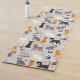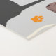 White cat, black cat, tabby cat, Persian cat, Siamese cat, tuxedo cat with paw prints on a light colored background.