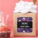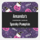Candle-, Seife- oder Küchenproduktkleber mit einem schönen Halloween-Motiv. Katzen in Hexenhüten, sitzen auf rosa Kürbissen mit lila Spinnweben im Hintergrund.