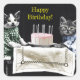 Cats celebrating a birthday with cake and candles quadratischer aufkleber