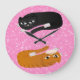 illustration of ginger and black cats over a pink glitter background