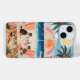 A vibrant beach scene unfolds with two cats lounging under a colorful umbrella. The camera performs a gentle zoom in, highlighting the playful expressions of the cats as they sip drinks. The background features a sparkling ocean and swaying palm trees, creating a tropical paradise. Soft sunlight bathes the scene in warm hues, enhancing the cheerful atmosphere. The composition is lively, with beach accessories scattered around, inviting viewers to immerse themselves in this idyllic setting.