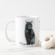 Gesegnet sind die Sanftmütigen, denn sie werden die Erde erben. Farbstiftzeichnungen von zwei Katzen schmücken diese Tasse.
