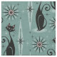 Für den Katzenliebhaber, Retro-Enthusiast, meine originelle Vektorgrafik von schwarzen Katzen, Sonnenburstuhren, Sternexplosionen, und Diamanten im atomaren Stil der Mitte des Jahrhunderts, in Schwarz, Speermintfarben und ein Hauch von Rosa.