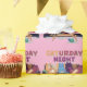 Auf einem gemütlichen Sofa genießen vier Katzen einen entspannenden Abend mit Pizza und Getränken, umgeben von einer spielerischen Atmosphäre. Die Worte "CATURDAY NIGHT" werden mutig über ihnen angezeigt und unterstreichen das entspannte Ambiente.