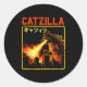 Catzilla Cat Monster Funny Japanese Parody Women M Runder Aufkleber